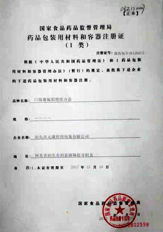 【口服液瓶鋁塑組合蓋生產(chǎn)資質(zhì)】